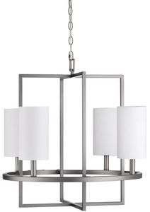 Crestview Collection's Fields Four Light Chandelier is the epitome of modern-industrial elegance. This open metal, cage-style design is crafted in a satin gunmetal finish and includes four white linen lamp shades. Candelabra bulbs are required for illumination and mounting hardware is included.Read More