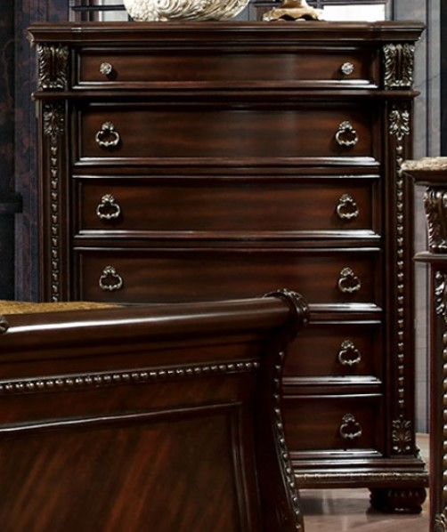 The Furniture of America® Fromberg Brown Cherry Chest features a rich brown cherry finish that exudes warmth and elegance. With its spacious drawers, this chest provides ample storage for clothing or personal items, while its classic design adds a timeless touch to any bedroom or living space.Read More
