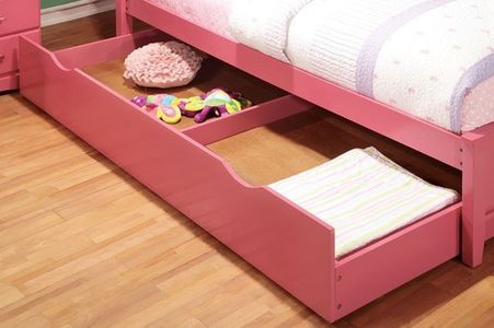 Vivid color styles perfectly complimented with detailed craftsmanship wood details. This trundle is available in an array of colors and will fit easily under the matching full or twin size bed.